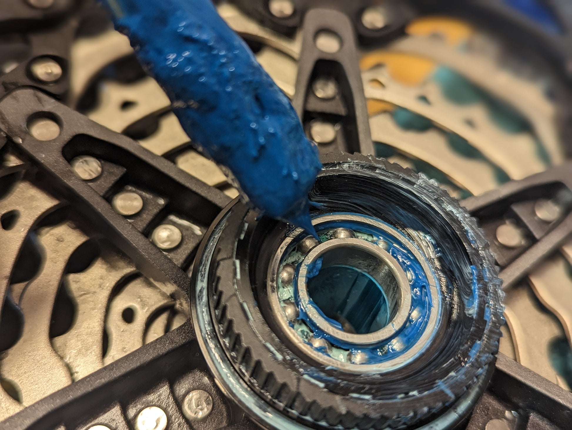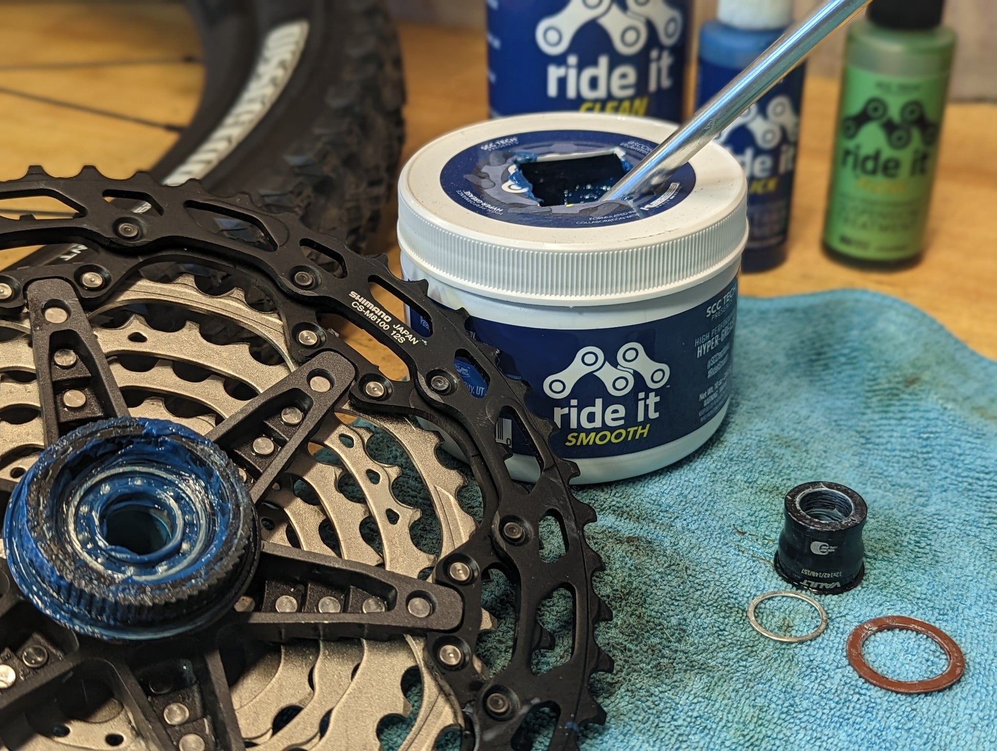 Several years ago an idea came. What if we took the key element that makes Ride It Slick and Ride It w/ Flow perform with smoothness and ease and incorporated it into a grease that could be used on the internal mechanisms of your bike components, such as the hub ratchet or pawls system, bottom bracket bearings, dropper post and suspension internal mechanics? It would have to be durable, yet light and smooth, it would have to be non-corrosive and play nice with parts made from various materials (such as foam and rubber rings, carbon fiber, and light metals.